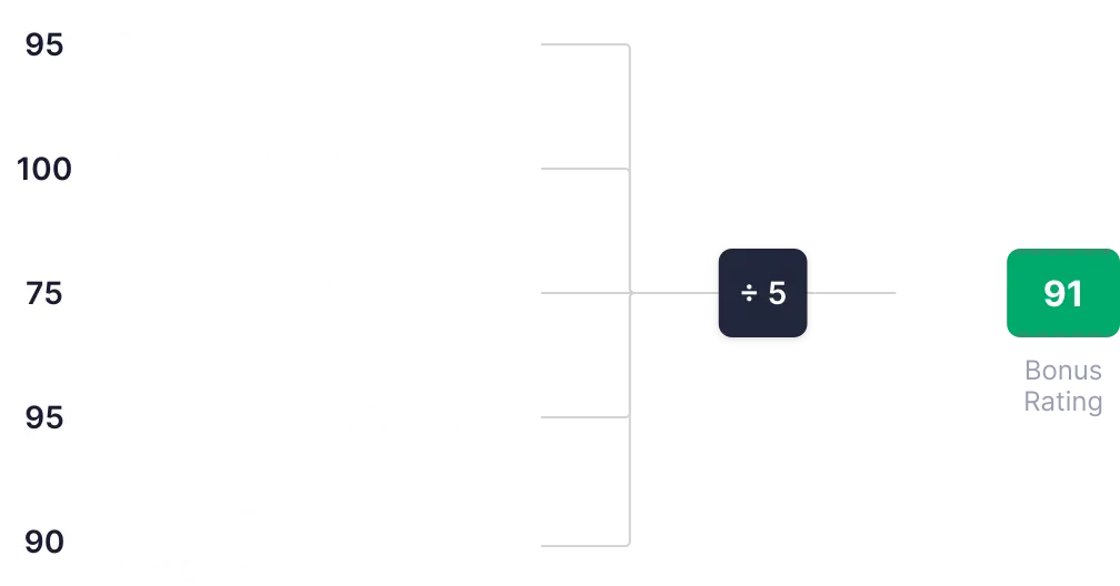 | Om kasinot erbjuder bonusar (välkomstbonus och exklusiv bonus utan insättning) med högre krav än genomsnittet. | 90 |
