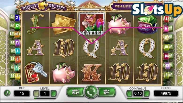 Antag att du vill prova den här spelautomaten direkt. Här hittar du en länk till en gratis demoversion av Piggy Riches på den här webbplatsen för att lära dig grunderna.
